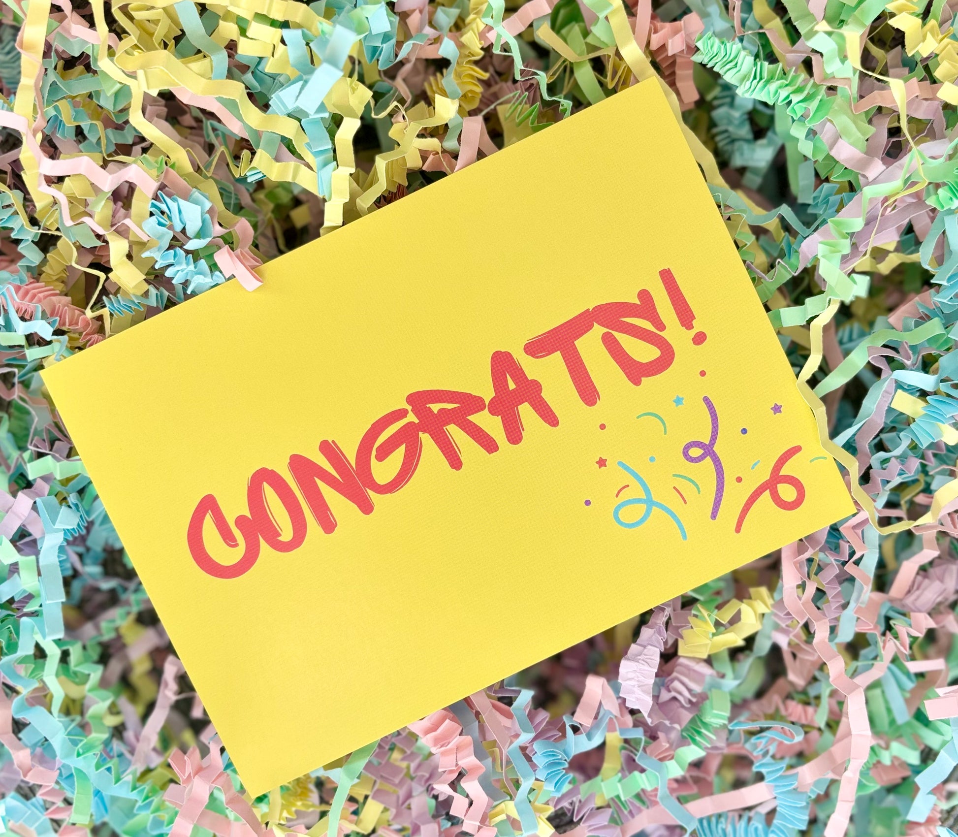 - Choose from Thankyou, You got this, Congrats, Have a great birthday, You're the best.
