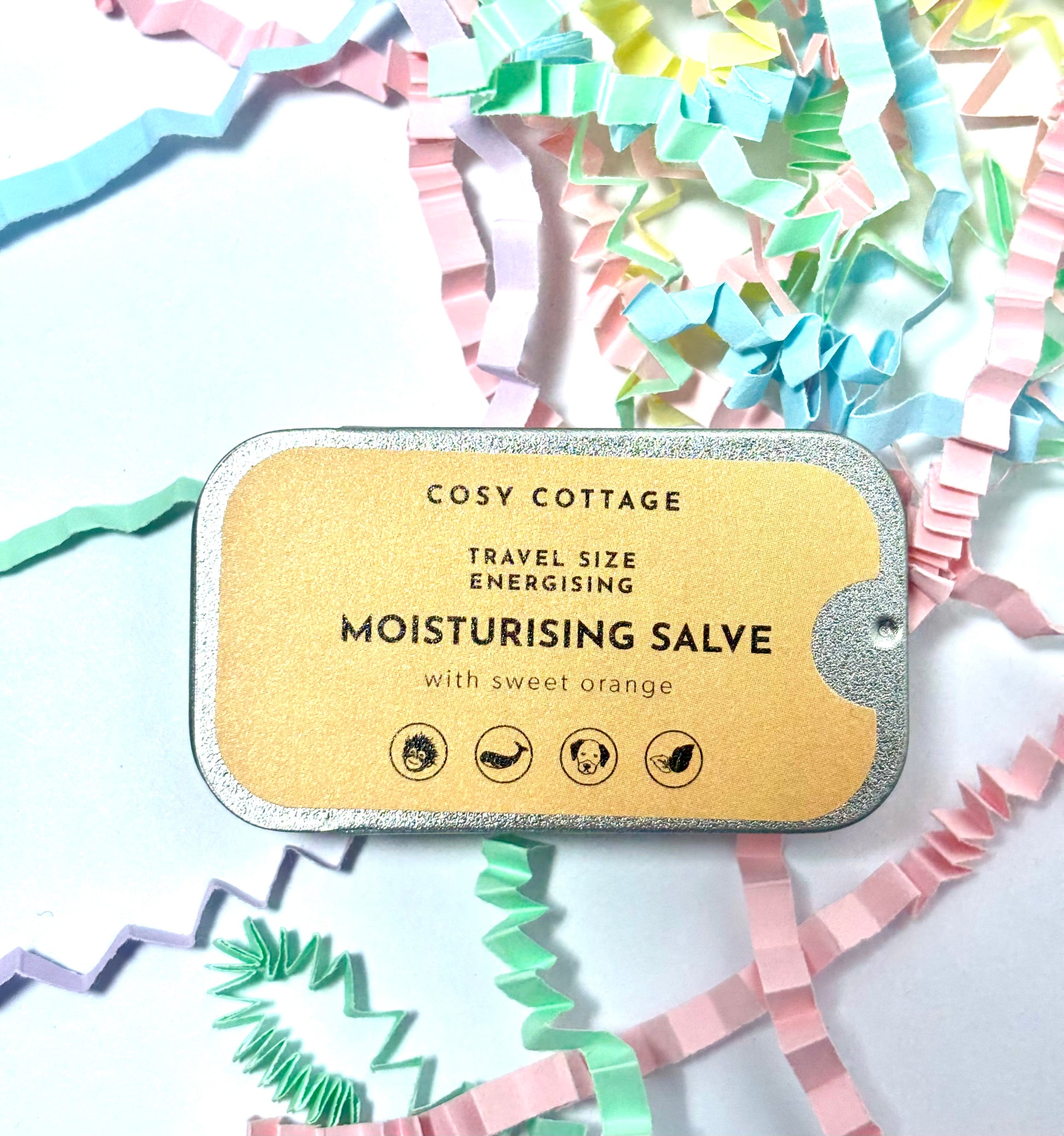 - Cosy Cottage Energising Moisturising Salve, with Sweet Orange, Just slip the lid and apply to dry skin for an instantaneous moisture fix, to pulse points for an energy or a mood boost and to temples to power up.